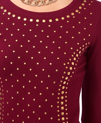 pattern. 3/4 sleeves. Round neckline. Stretch fit. Knit. Unlined. Lightweight.